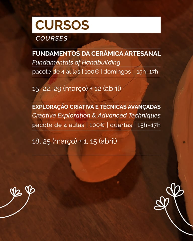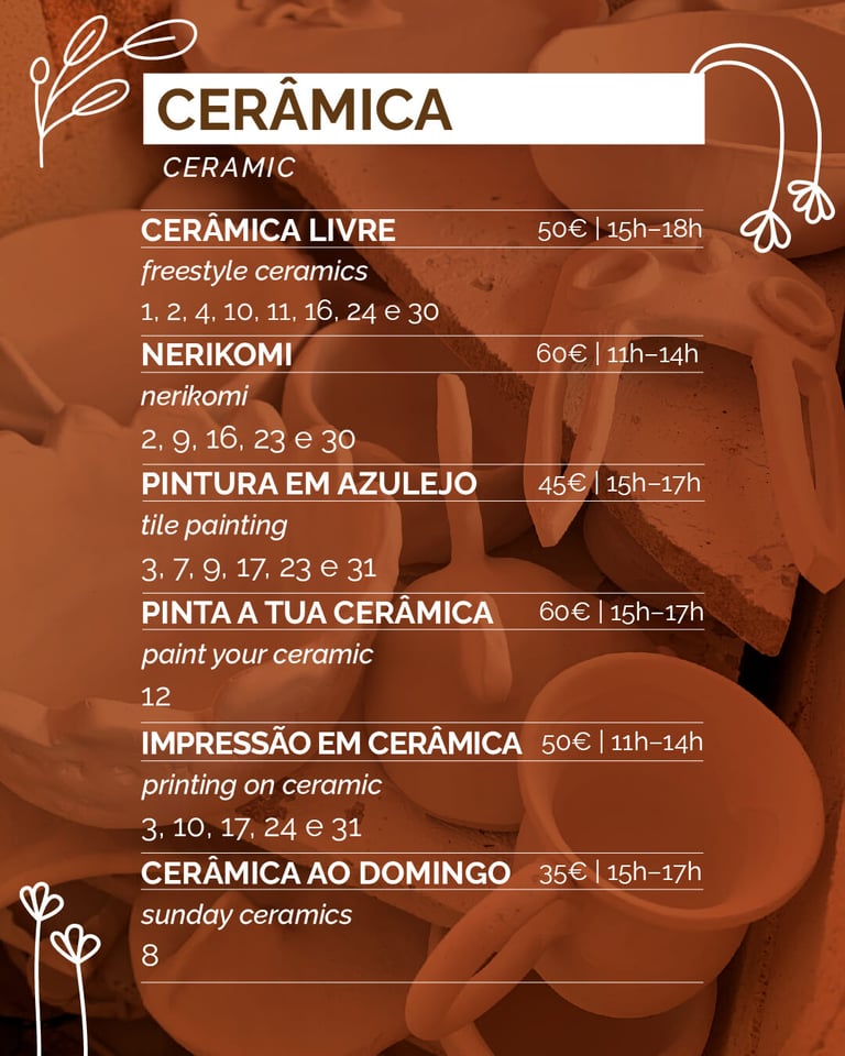 Discover the perfect fusion of ceramics, drawing, and printing in this creative workshop! Learn how to design and craft your own ceramic pieces while incorporating drawing techniques and printing methods directly onto the clay. Whether you're new to ceramics or experienced, this workshop will guide you through the process of translating your ideas onto a ceramic canvas. It's an ideal way to slow down, relax, and let your creativity flow after a busy day in Porto.
